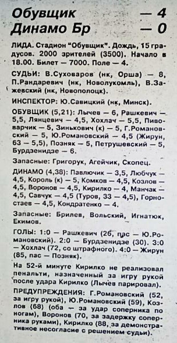 «Обувщик» Лида - «Динамо» Брест - 4:0