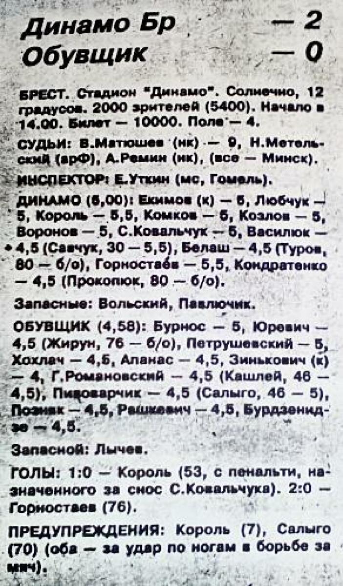 «Динамо» Брест - «Обувщик» Лида - 2:0