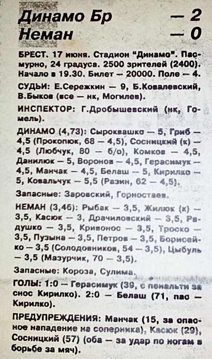 «Динамо» Брест - «Неман» Гродно - 2:0