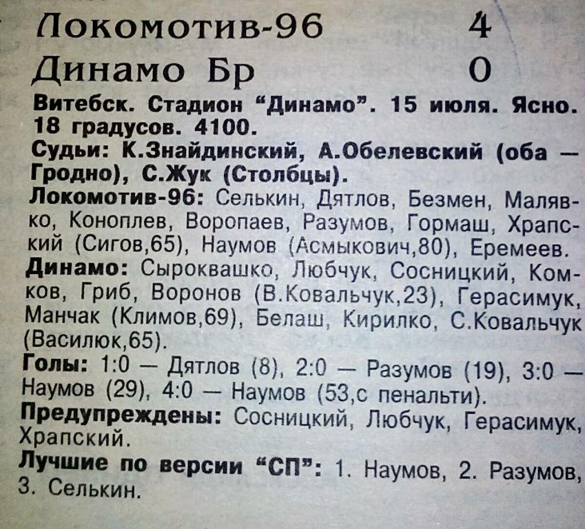 «Локомотив-96» Витебск - «Динамо» Брест - 4:0