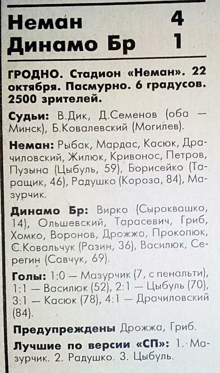 «Неман» Гродно - «Динамо» Брест - 4:1