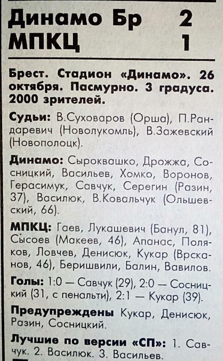 «Динамо» Брест - МПКЦ Мозырь - 2:1