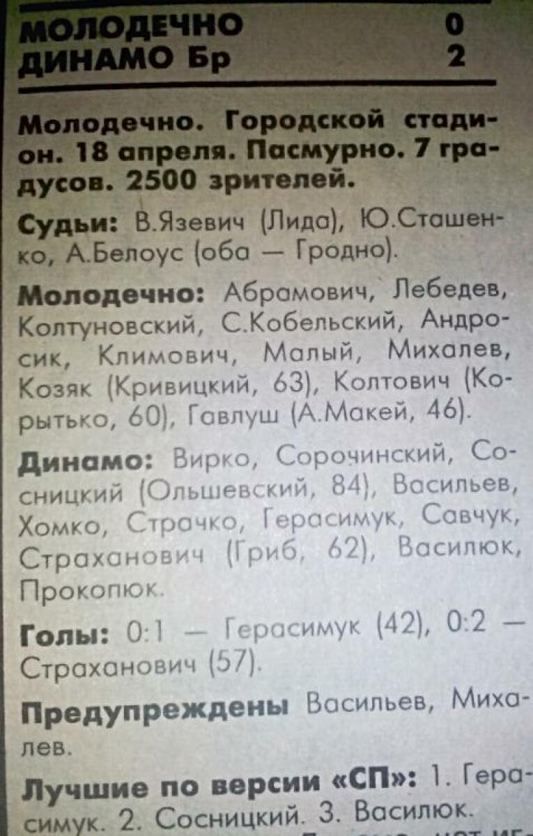 «Молодечно» Молодечно - «Динамо» Брест - 0:2