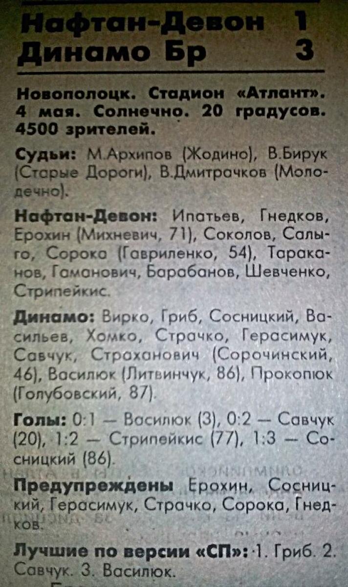«Нафтан-Девон» Новополоцк - «Динамо» Брест - 1:3