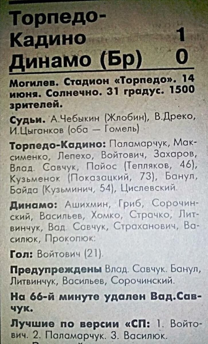 «Торпедо-Кадино» Могилёв - «Динамо» Брест - 1:0