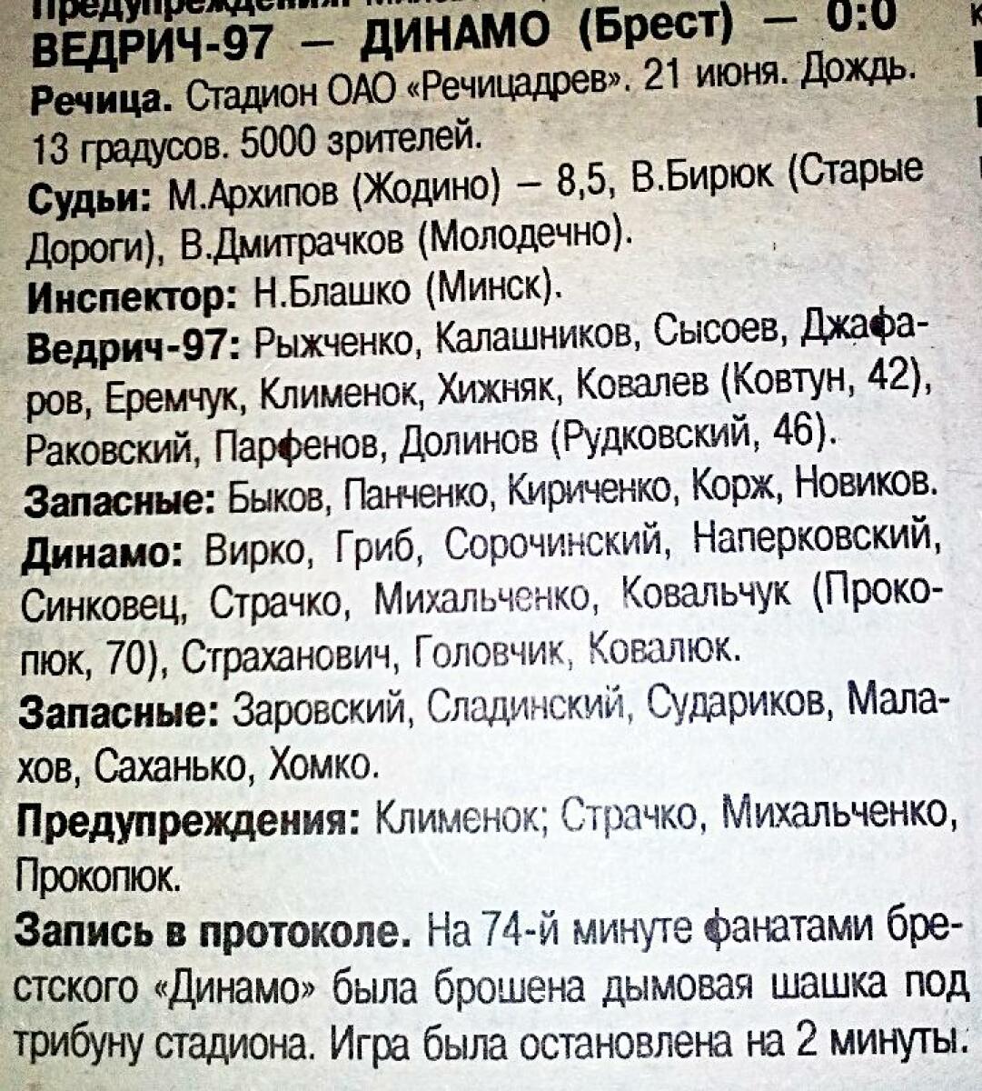 «Ведрич-97» Речица - «Динамо» Брест - 0:0
