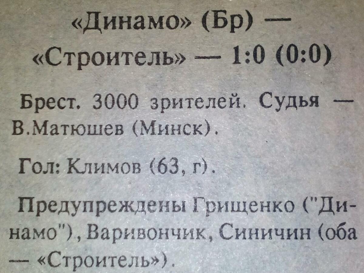 «Динамо» Брест - «Строитель» Старые Дороги - 1:0