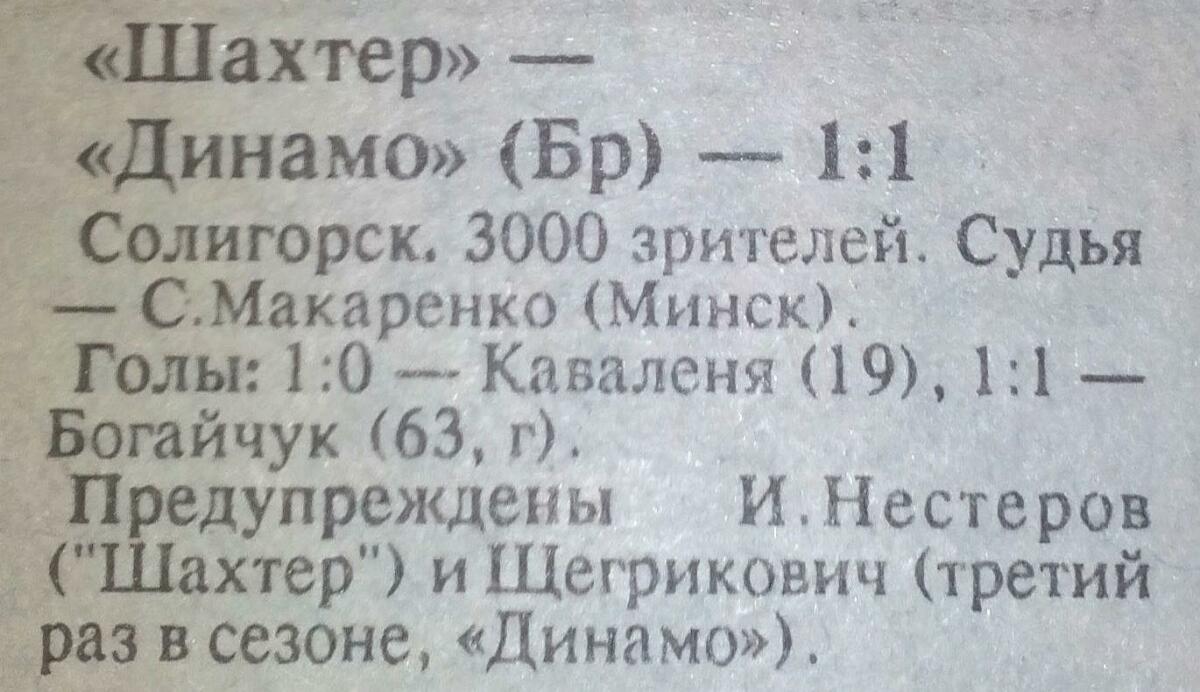 «Шахтёр» Солигорск - «Динамо» Брест - 1:1