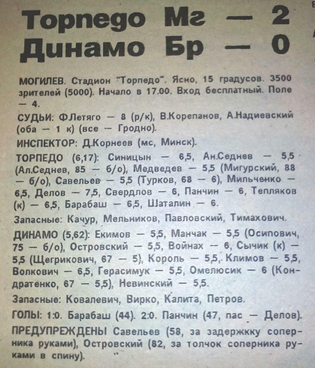 «Торпедо» Могилёв - «Динамо» Брест - 2:0