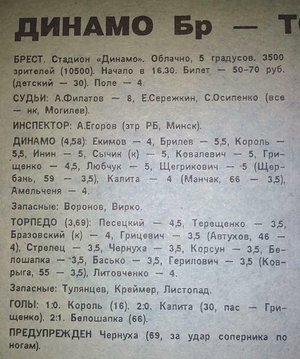 «Динамо» Брест - «Торпедо» Жодино - 2:1