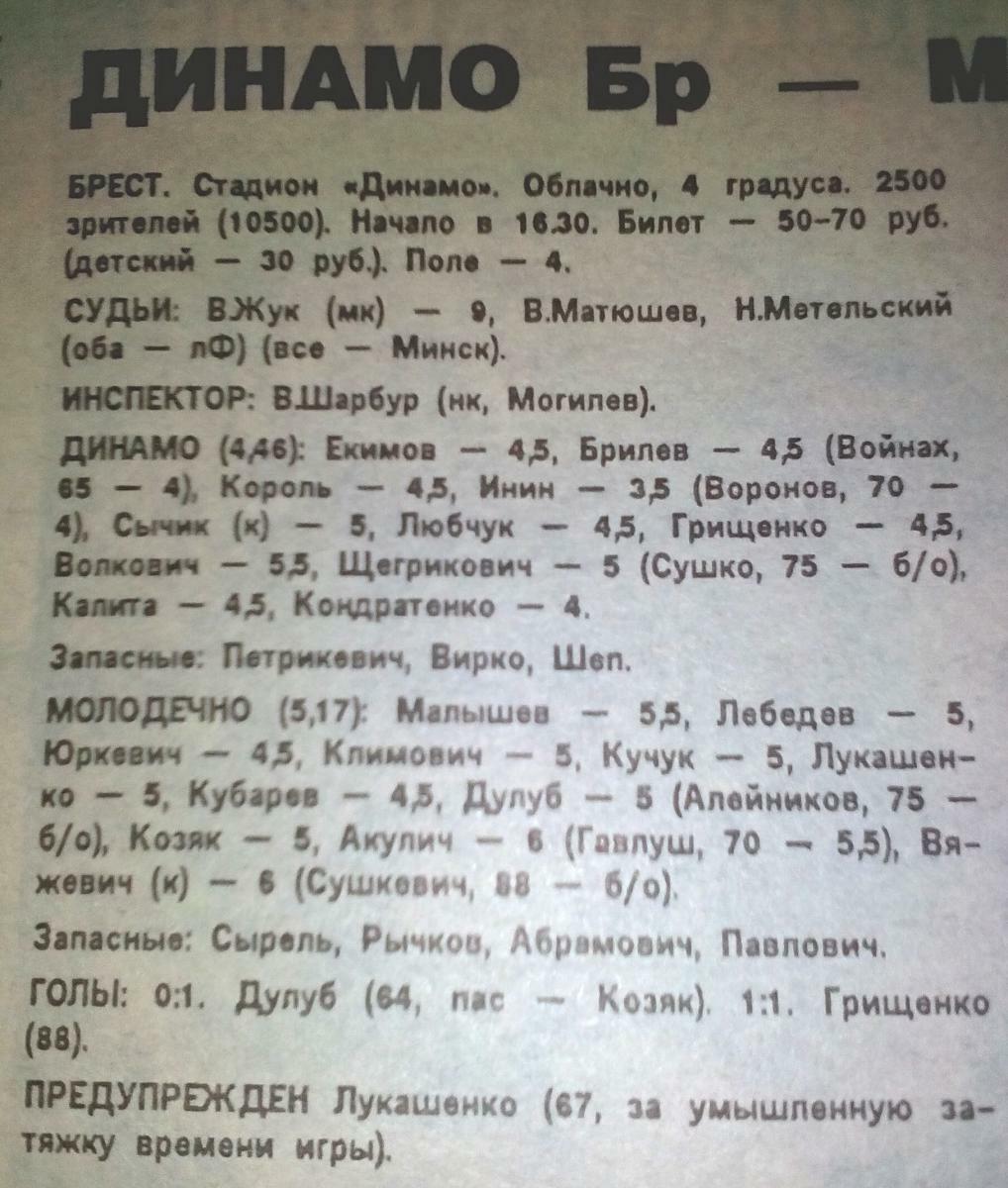 «Динамо» Брест - «Молодечно» Молодечно - 1:1
