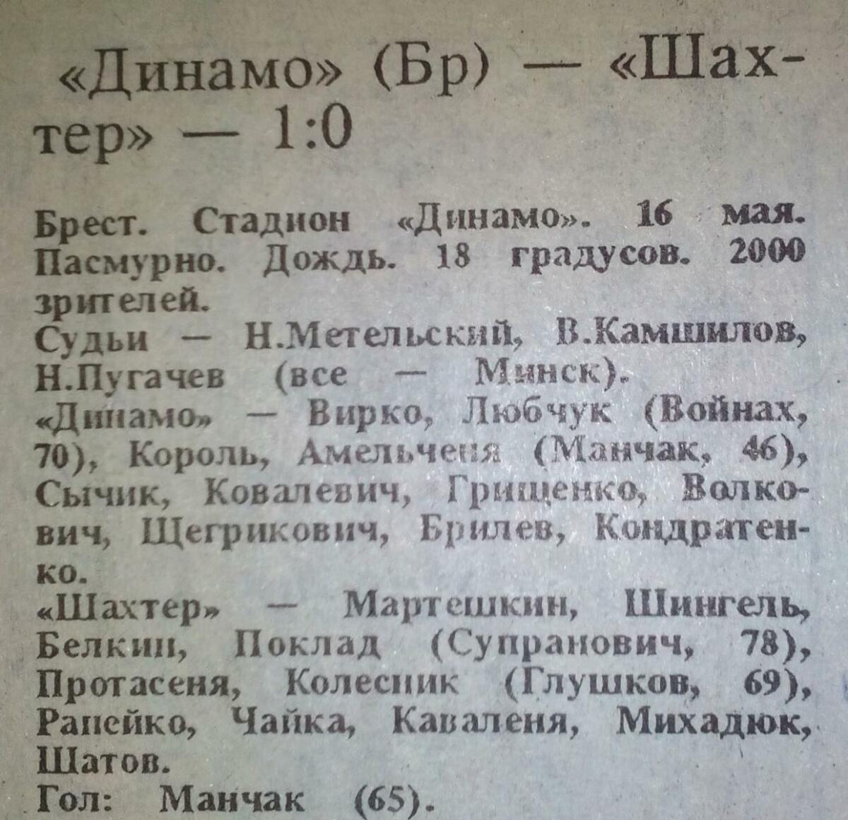 «Динамо» Брест - «Шахтёр» Солигорск - 1:0
