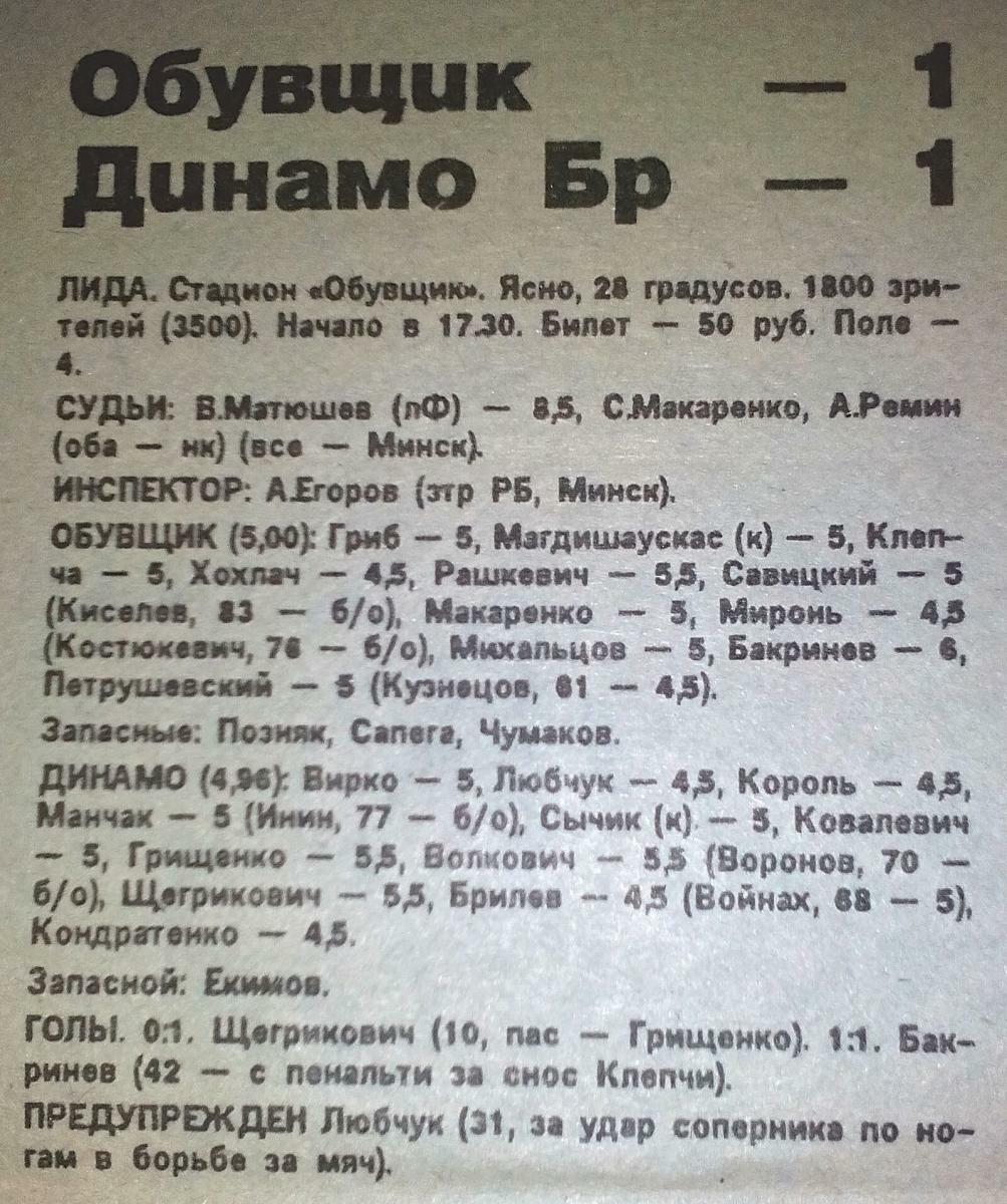 «Обувщик» Лида - «Динамо» Брест - 1:1