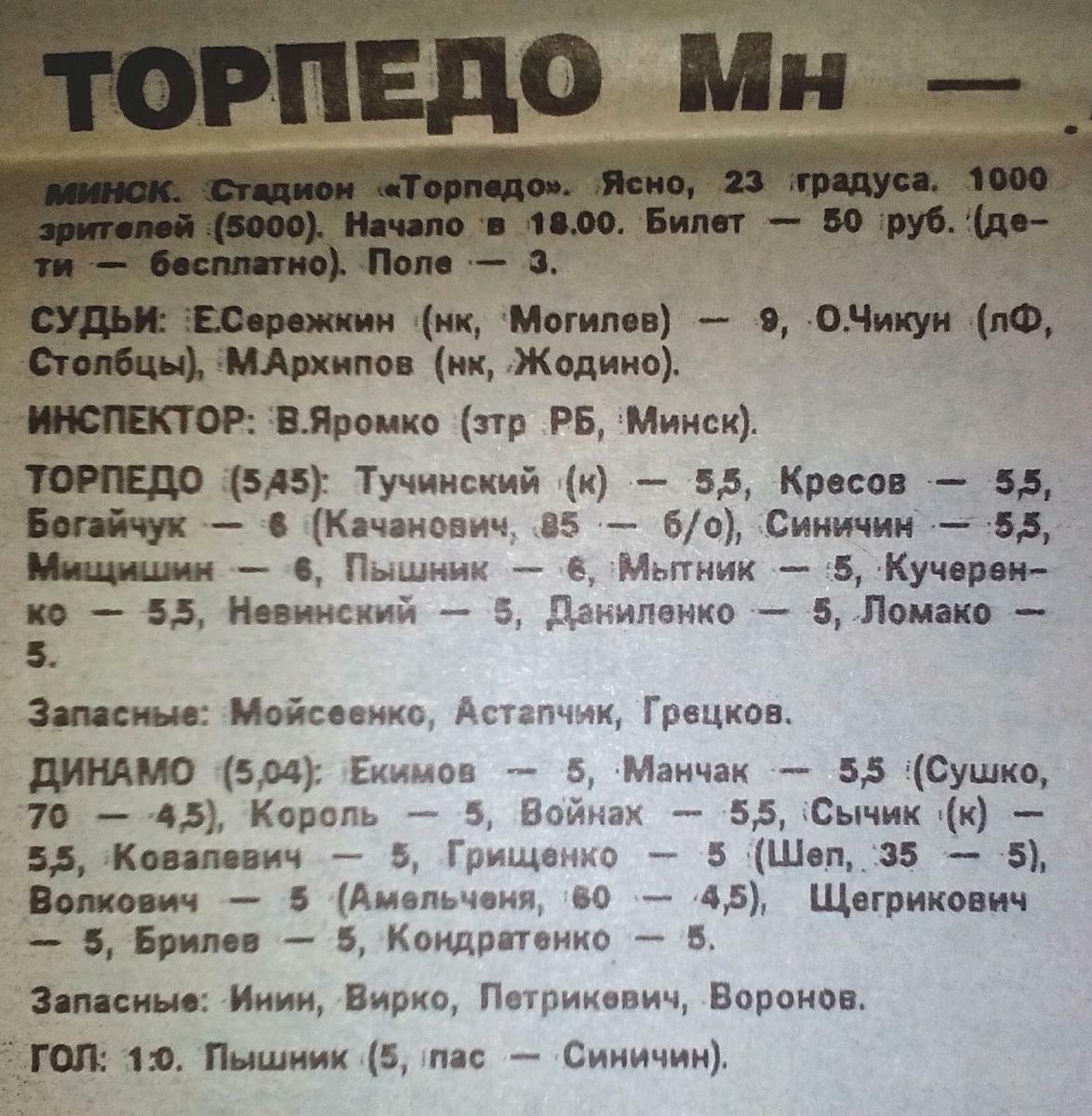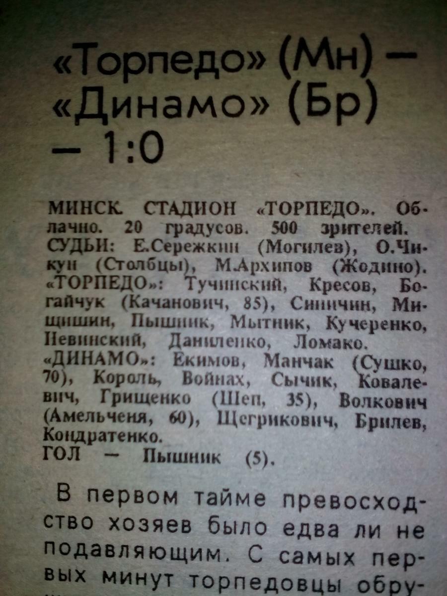 «Торпедо» Минск - «Динамо» Брест - 1:0