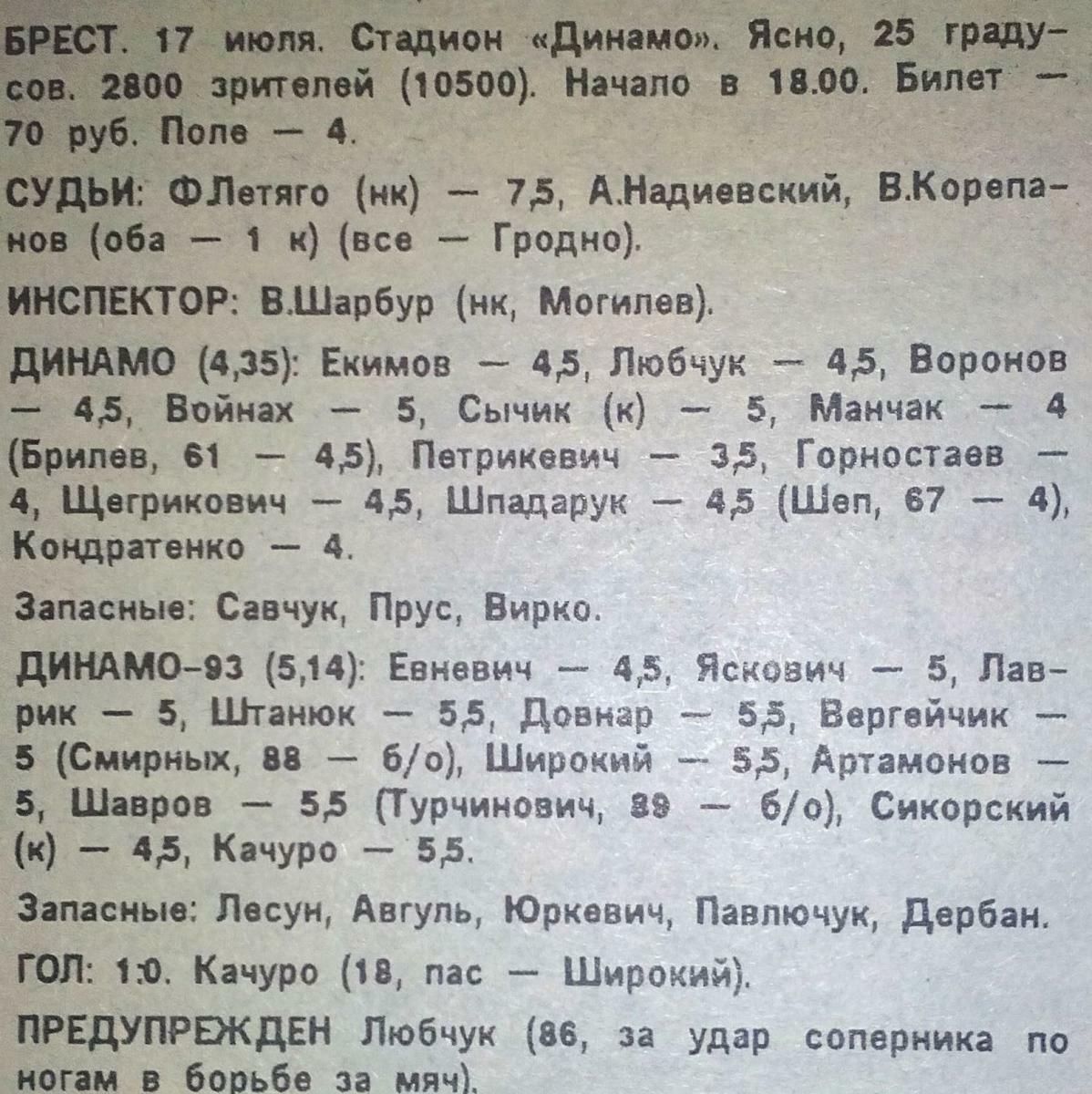 «Динамо» Брест - «Динамо-93» Минск - 0:1