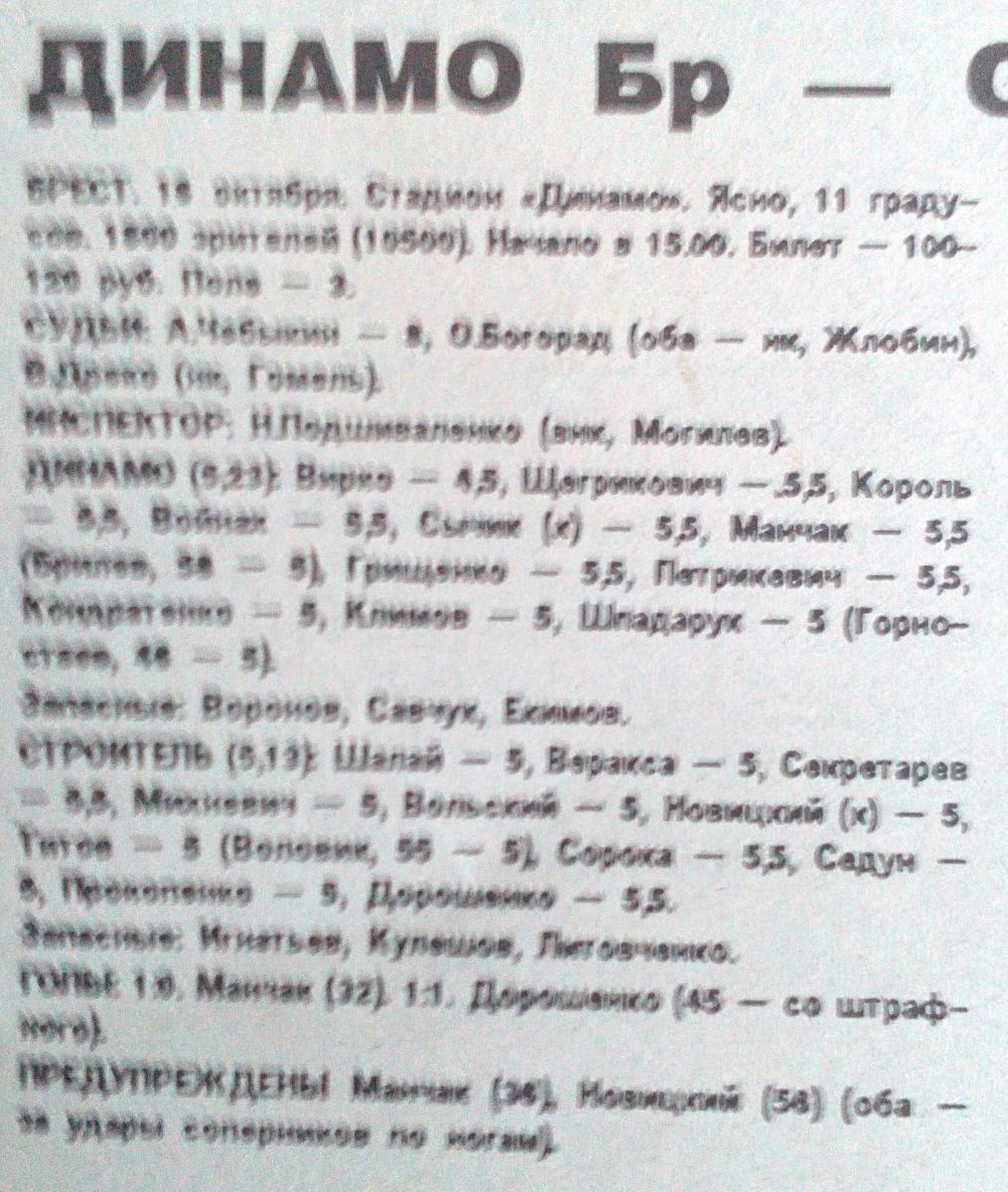 «Динамо» Брест - «Строитель» Старые Дороги - 1:1