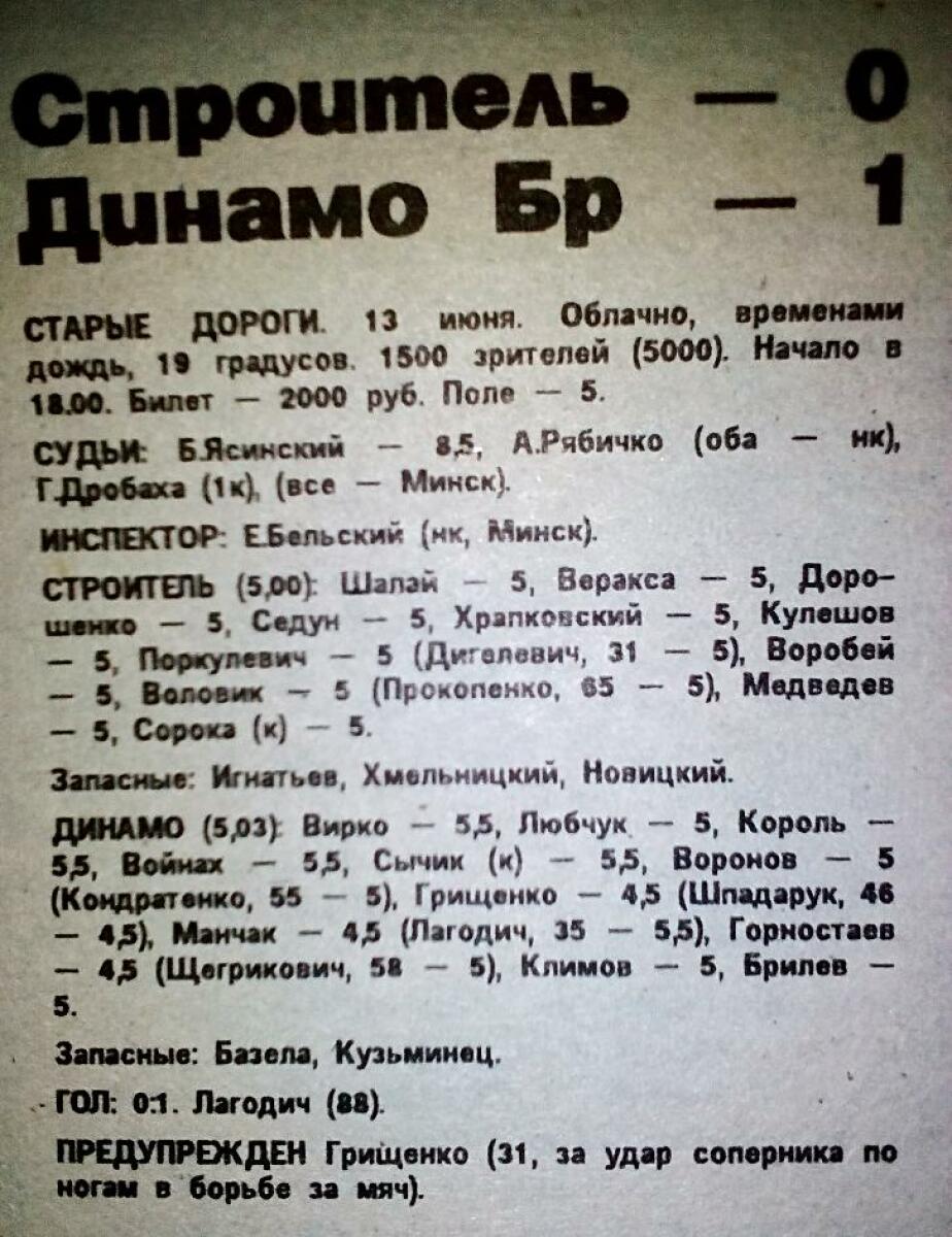 «Строитель» Старые Дороги - «Динамо» Брест - 0:1