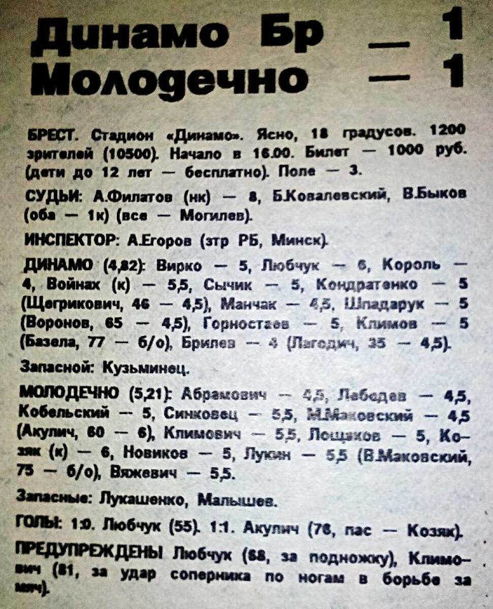 «Динамо» Брест - «Молодечно» Молодечно - 1:1