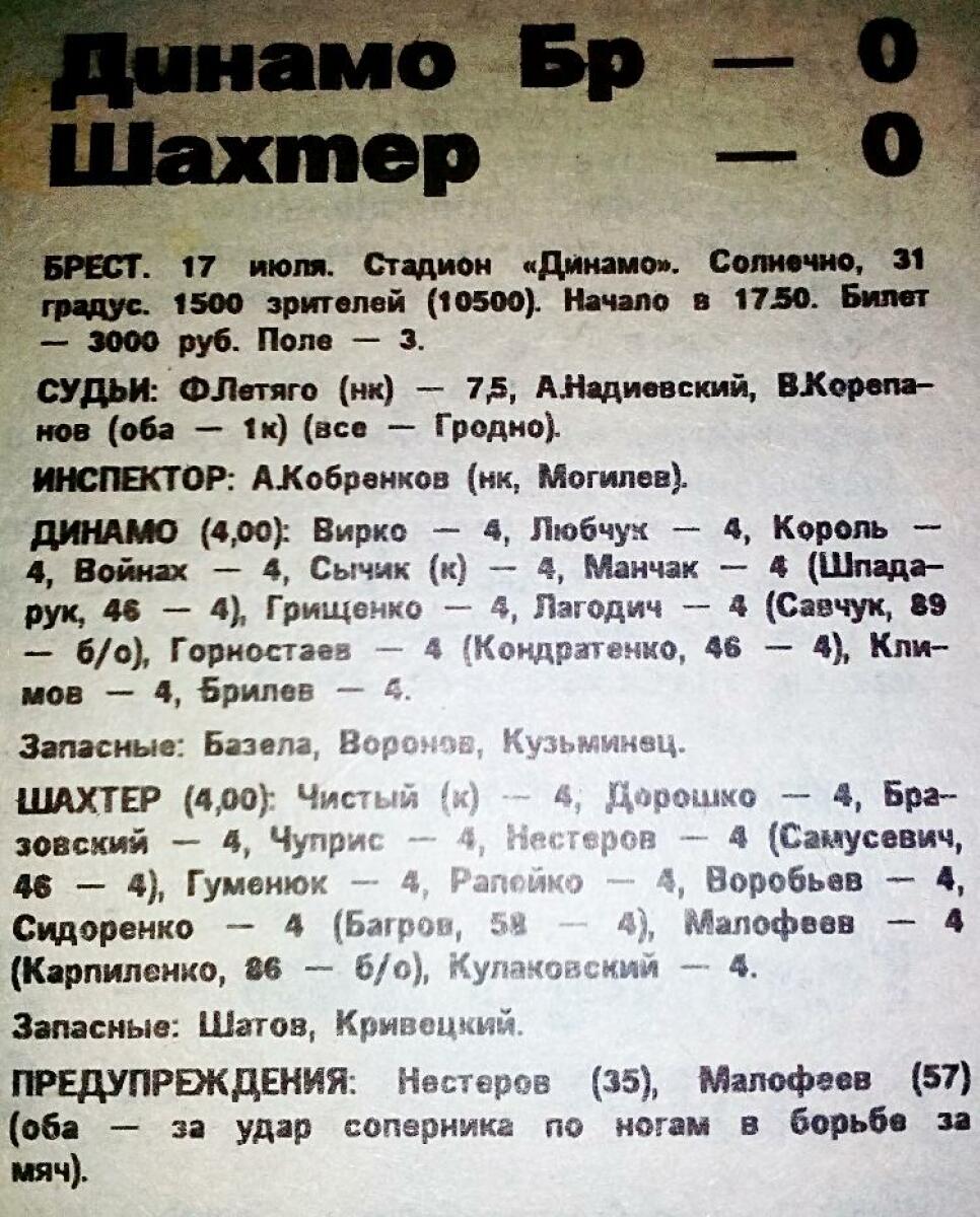 «Динамо» Брест - «Шахтёр» Солигорск - 0:0