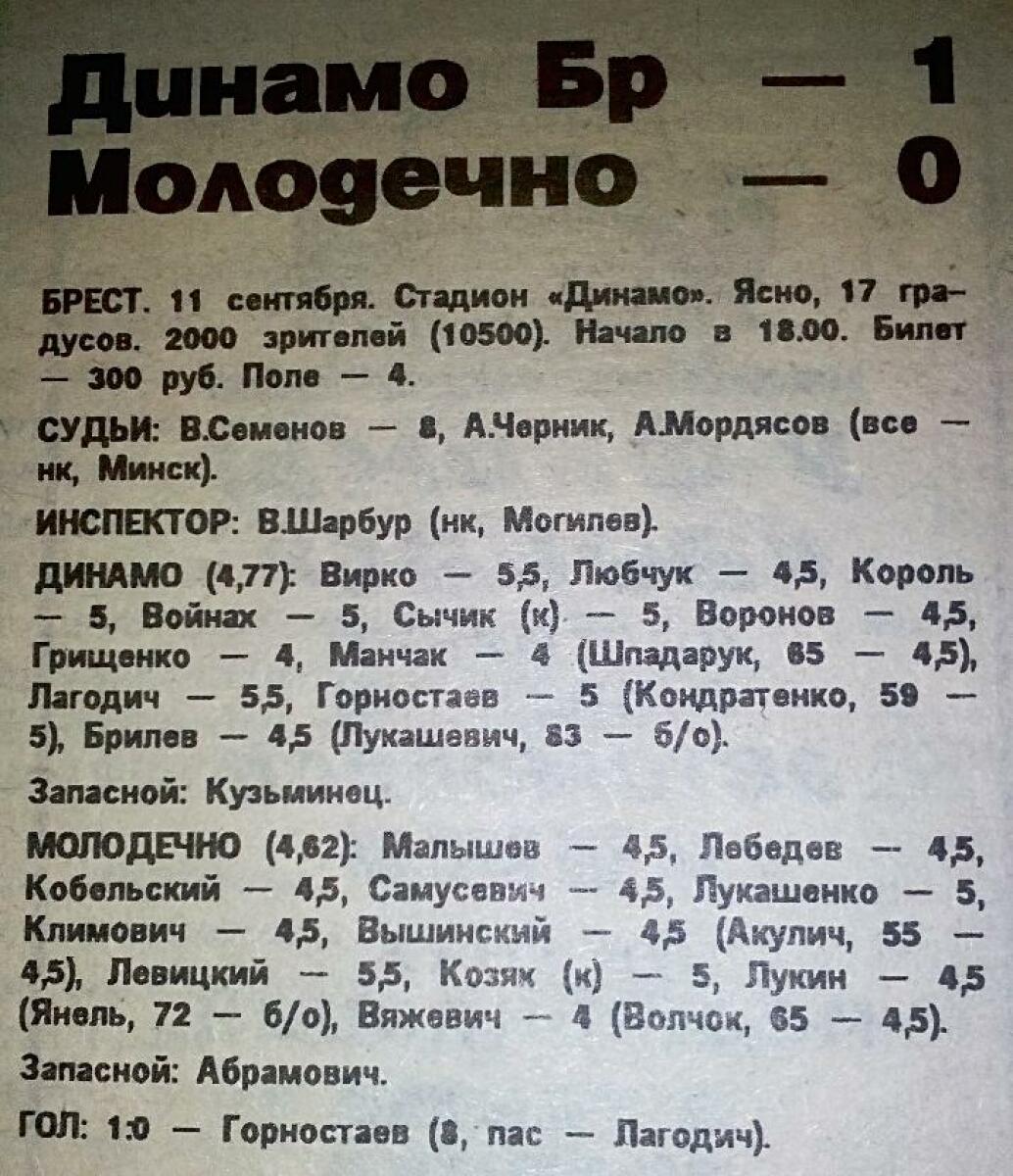 «Динамо» Брест - «Молодечно» Молодечно - 1:0