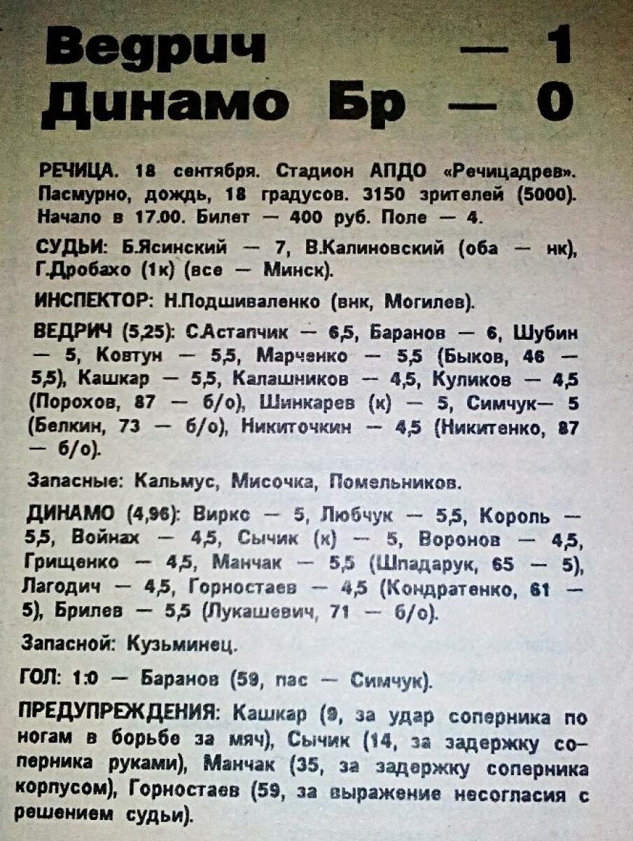 «Ведрич» Речица - «Динамо» Брест - 1:0
