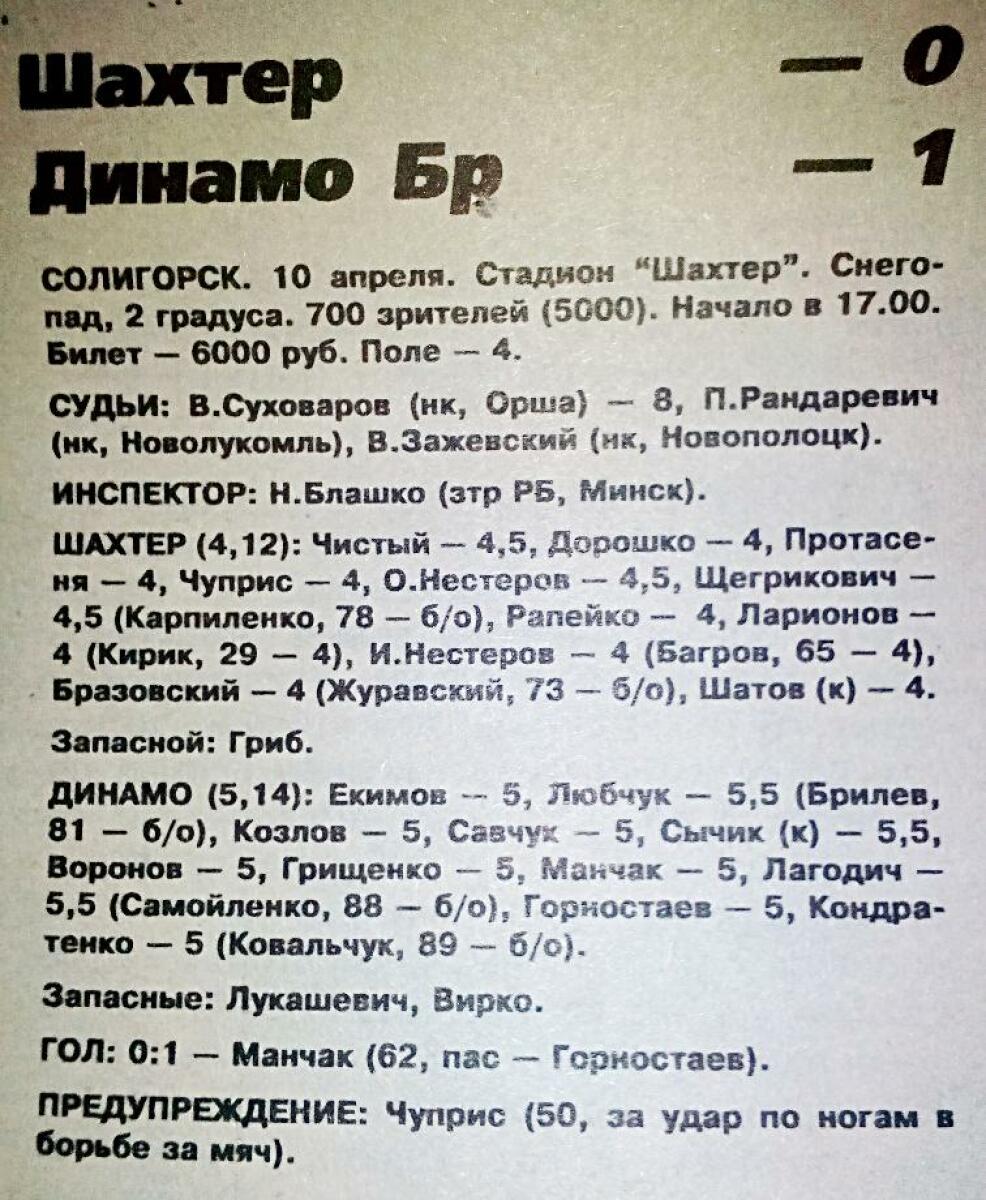«Шахтёр» Солигорск - «Динамо» Брест - 0:1