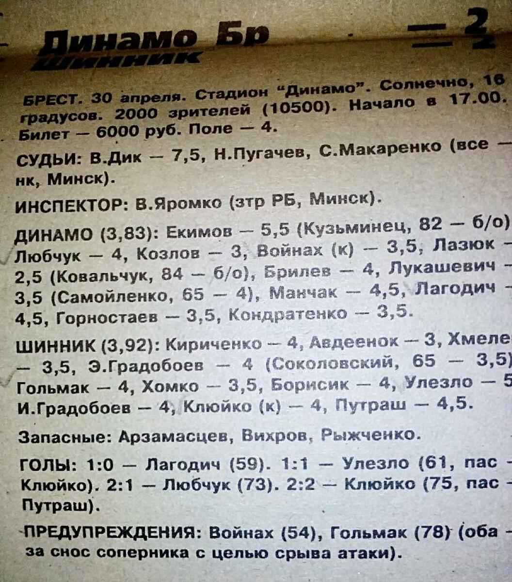 «Динамо» Брест - «Шинник» Бобруйск - 2:2