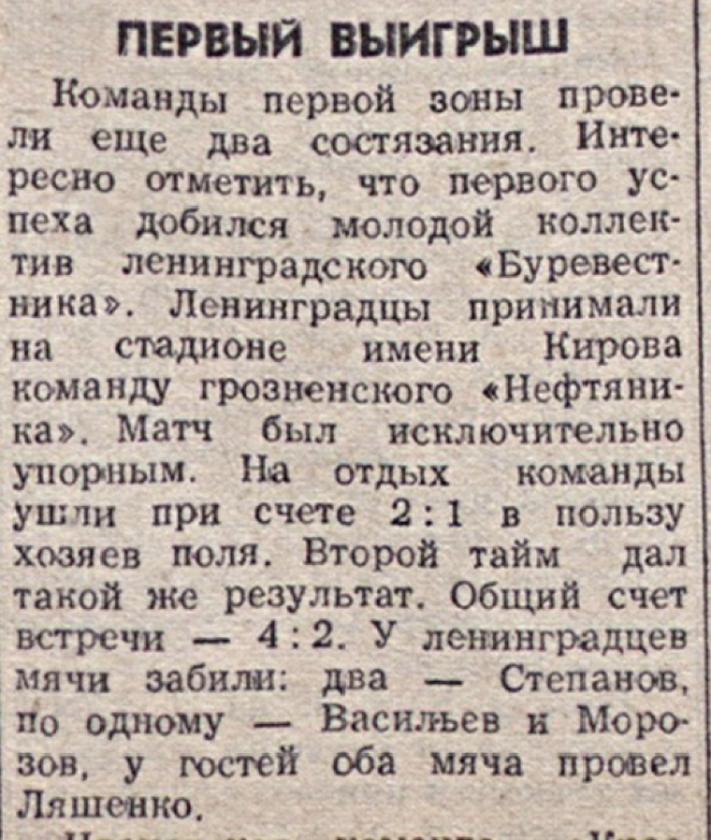 «Буревестник» Ленинград - «Нефтяник» Грозный - 4:2
