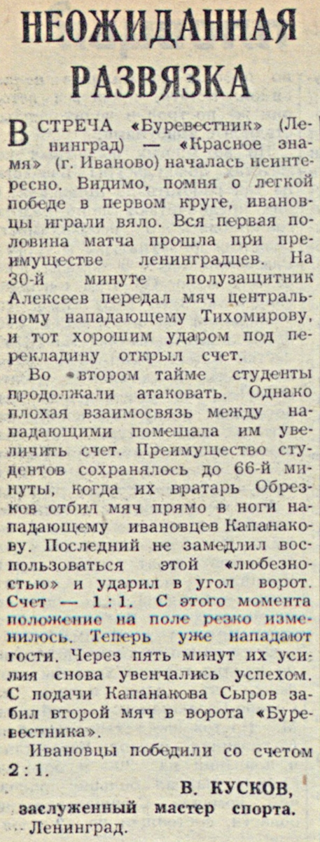 «Буревестник» Ленинград - «Красное Знамя» Иваново - 1:2