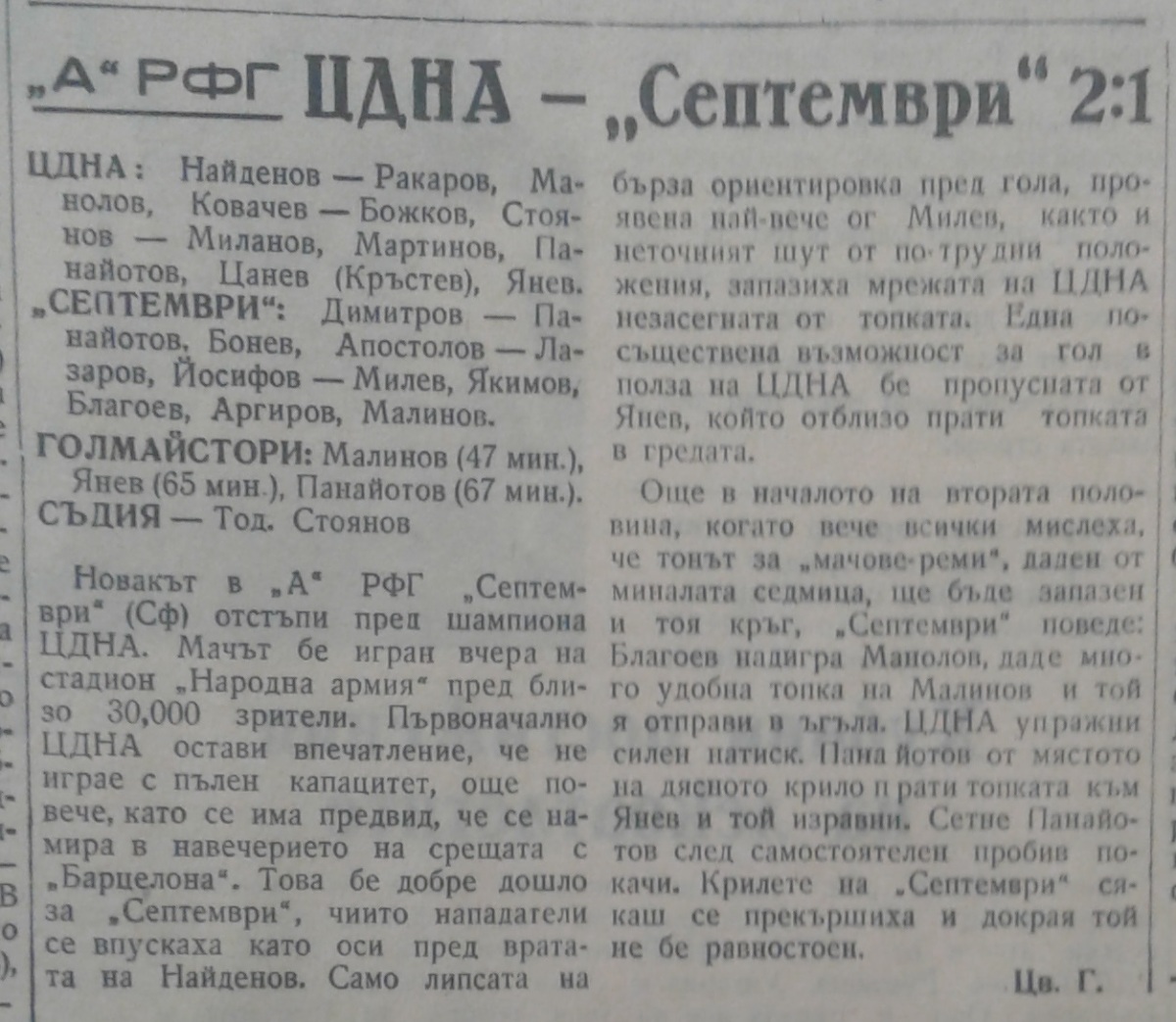 «Септември» София - ЦДНА София - 1:2