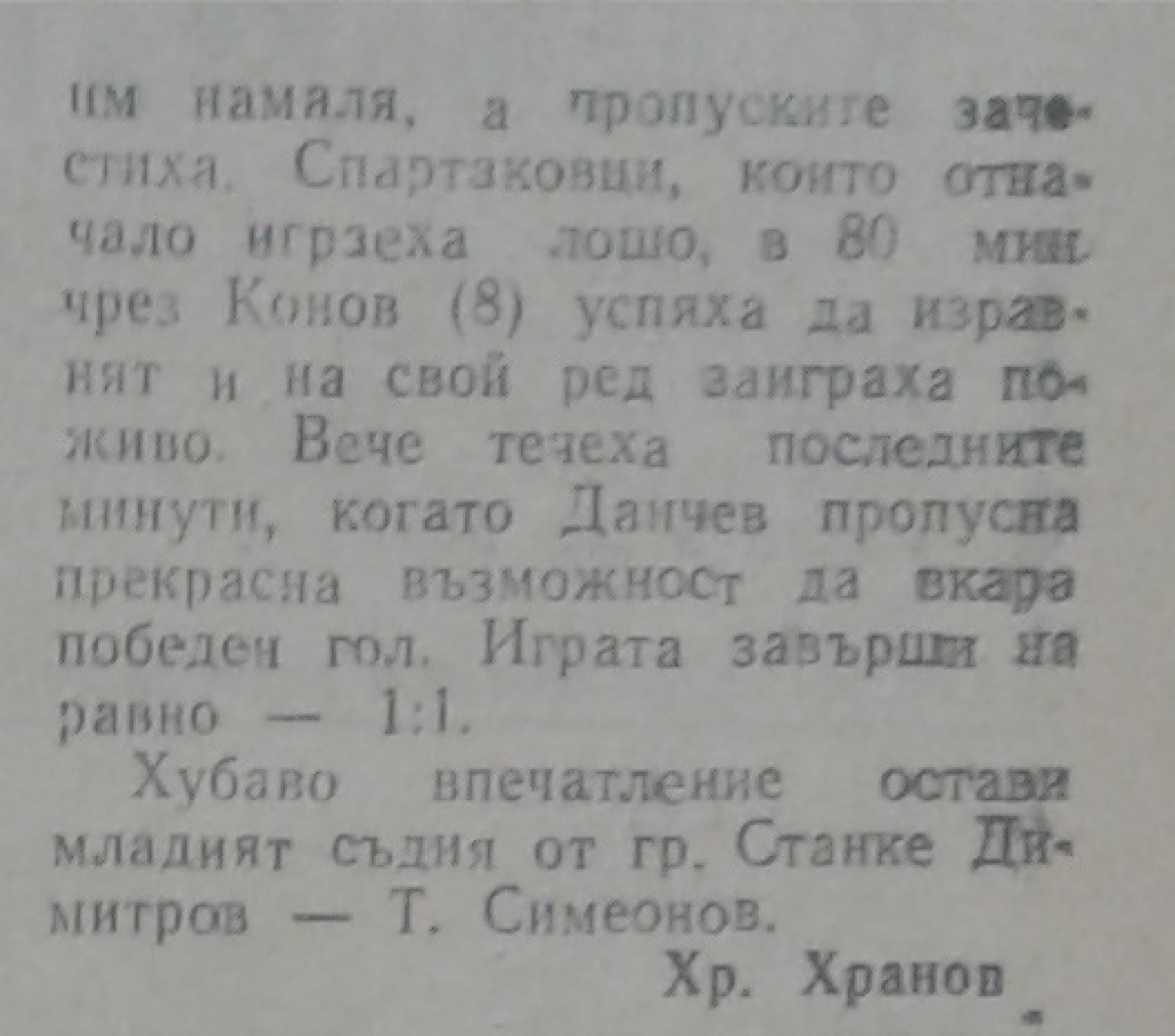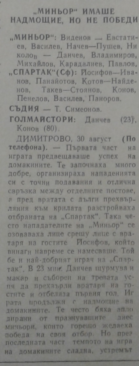 «Минёр» Димитрово - «Спартак» София - 1:1
