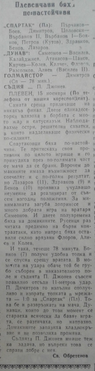 «Спартак» Плевен - «Дунав» Русе - 1:0