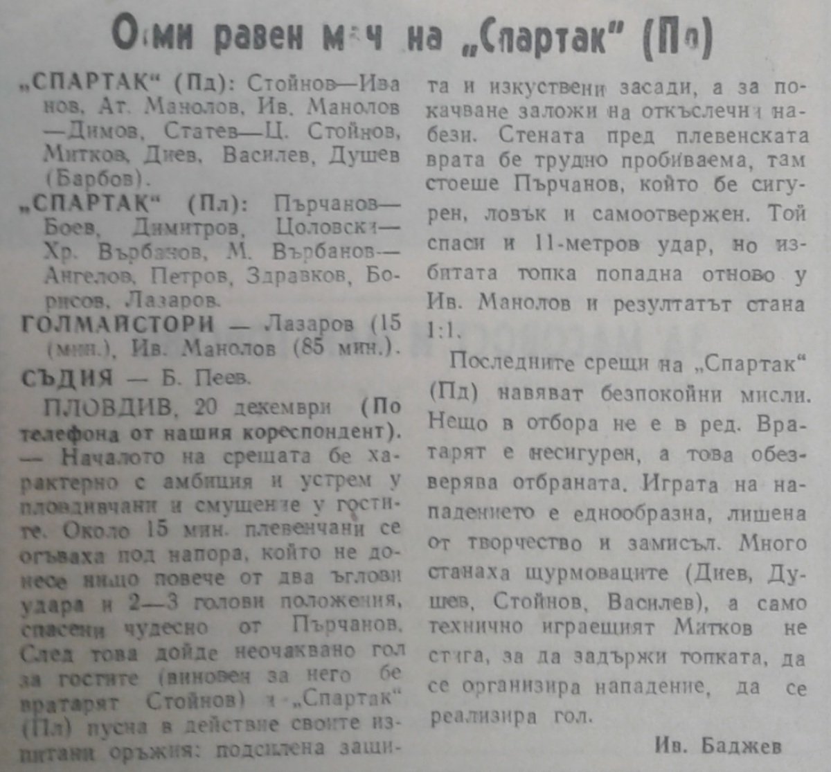 «Спартак» Пловдив - «Спартак» Плевен - 1:1