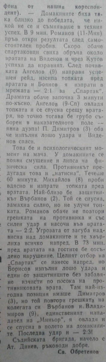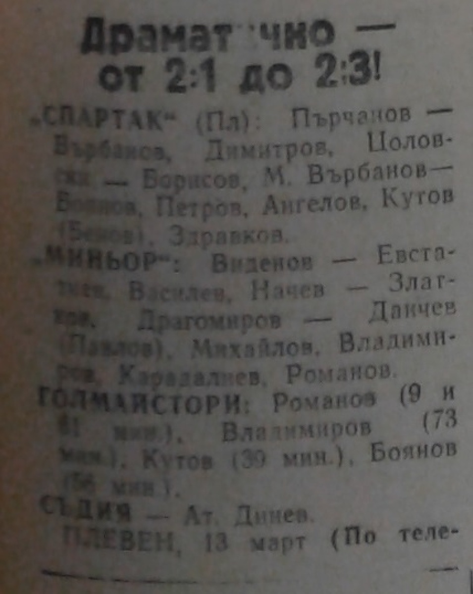 «Спартак» Плевен - «Минёр» Димитрово - 2:3