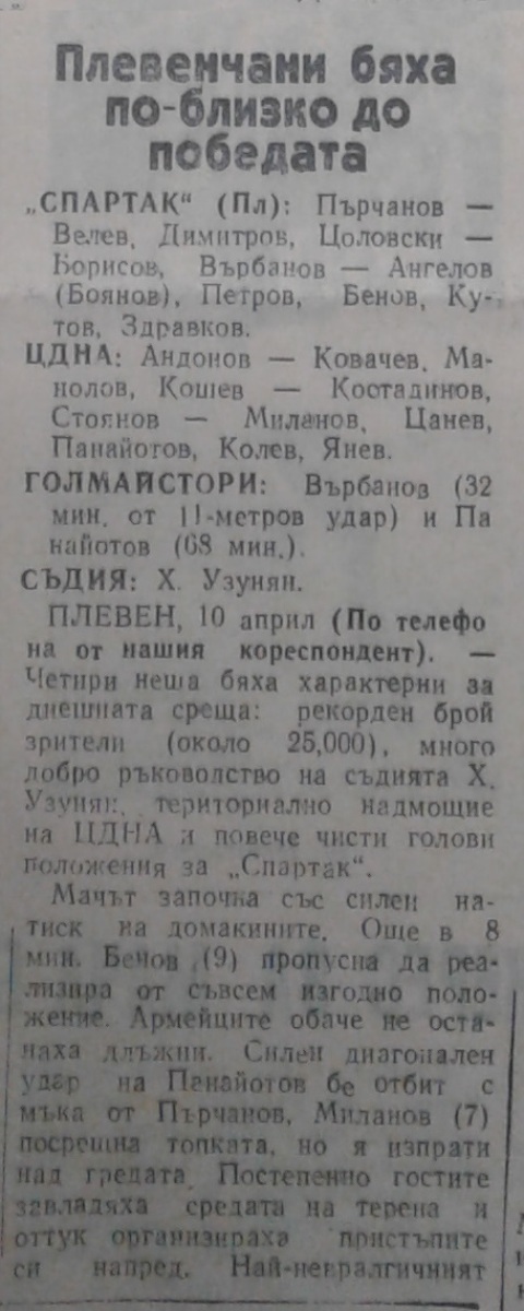 «Спартак» Плевен - ЦДНА София - 1:1
