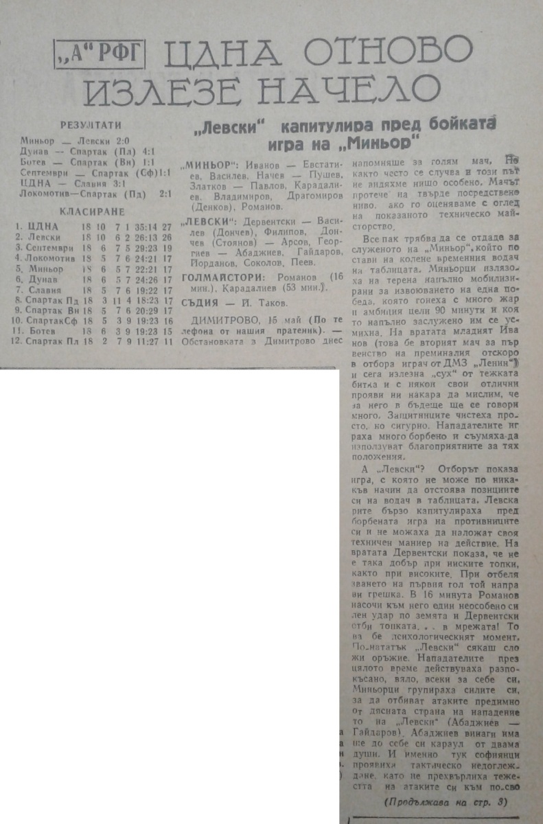 «Минёр» Димитрово - «Левски» София - 2:0
