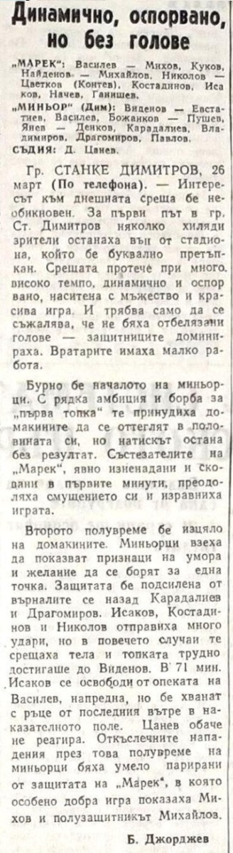 «Марек» Станке-Димитров - «Минёр» Димитрово - 0:0