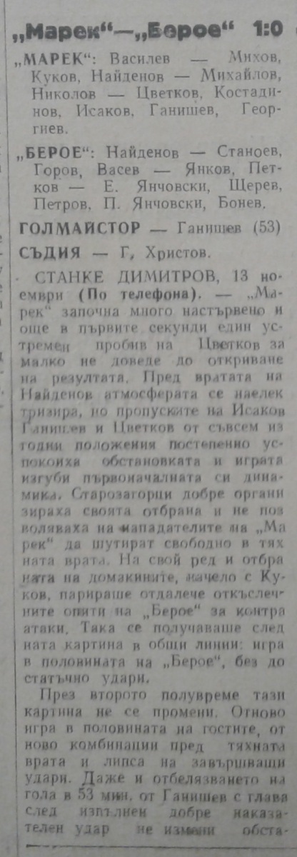 «Марек» Станке-Димитров - «Берое» Стара-Загора - 1:0