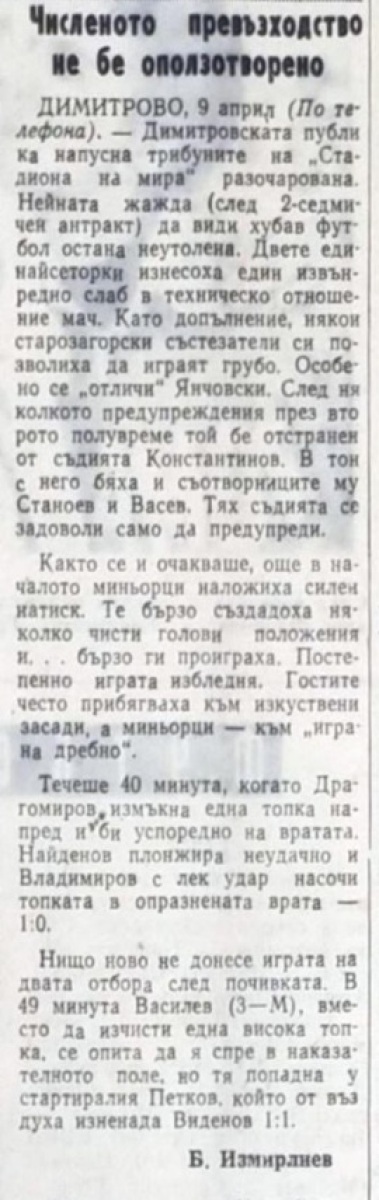 «Минёр» Димитрово - «Берое» Стара-Загора - 1:1