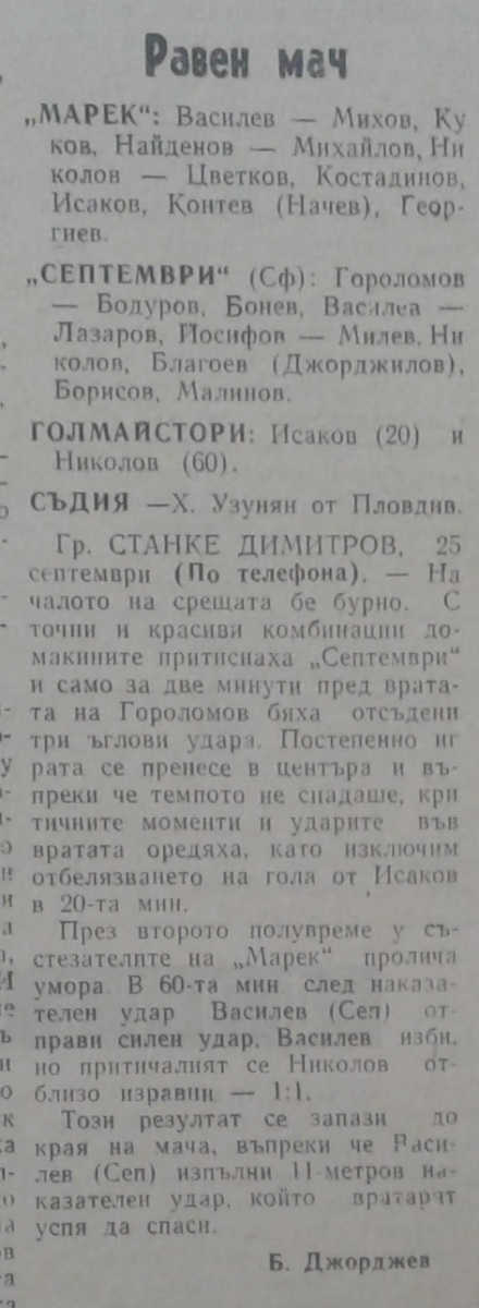 «Марек» Станке-Димитров - «Септември» София - 1:1