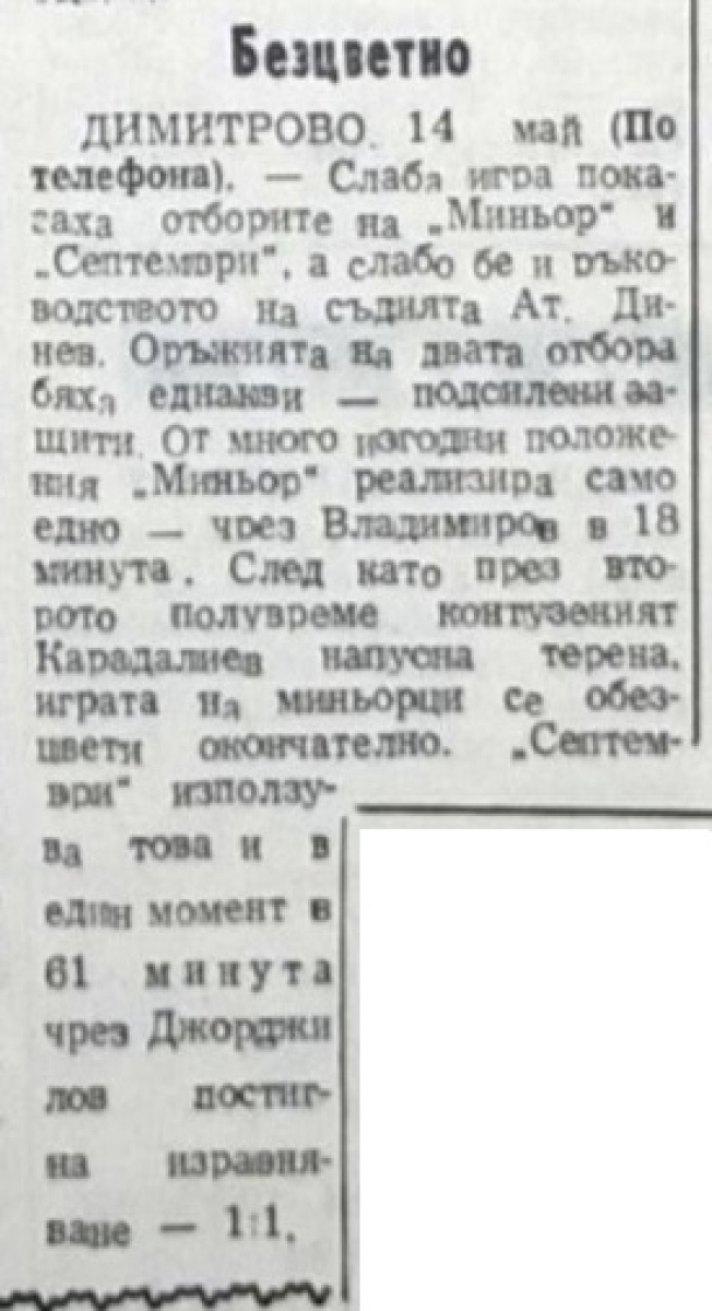 «Минёр» Димитрово - «Септември» София - 1:1