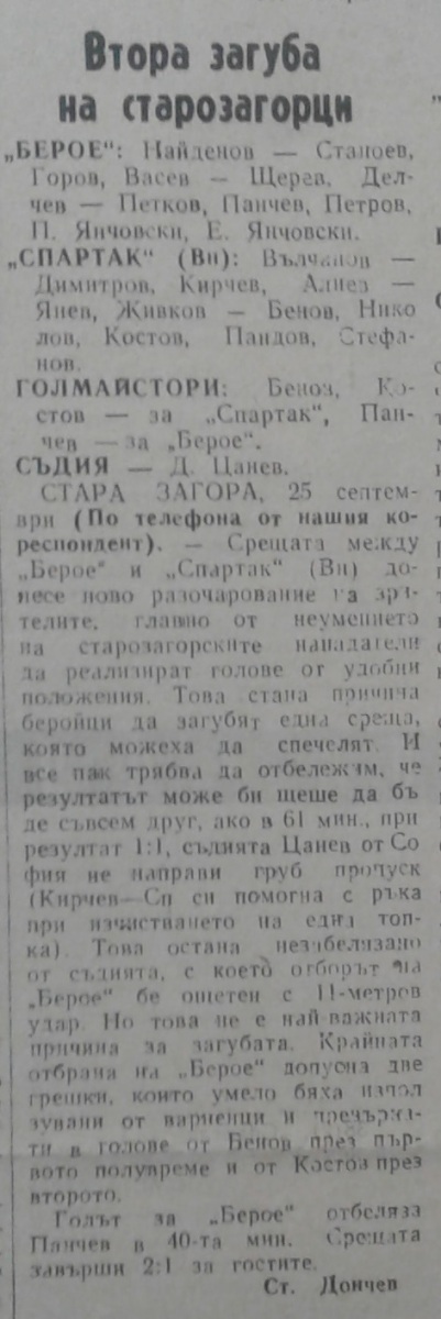 «Берое» Стара-Загора - «Спартак» Варна - 1:2