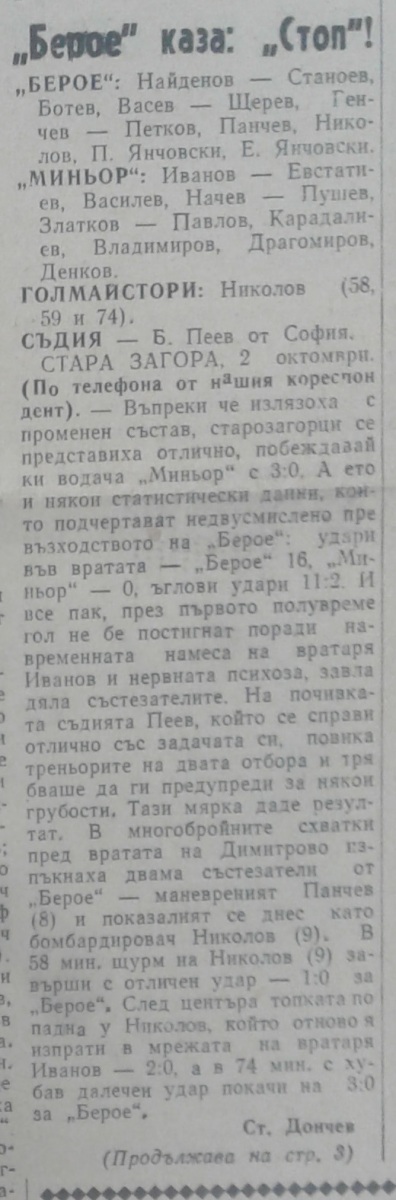 «Берое» Стара-Загора - «Минёр» Димитрово - 3:0