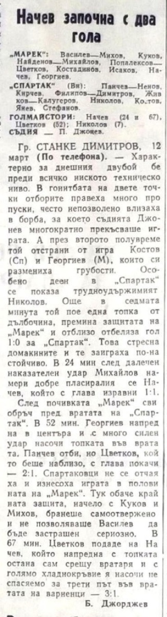 «Марек» Станке-Димитров - «Спартак» Варна - 3:1