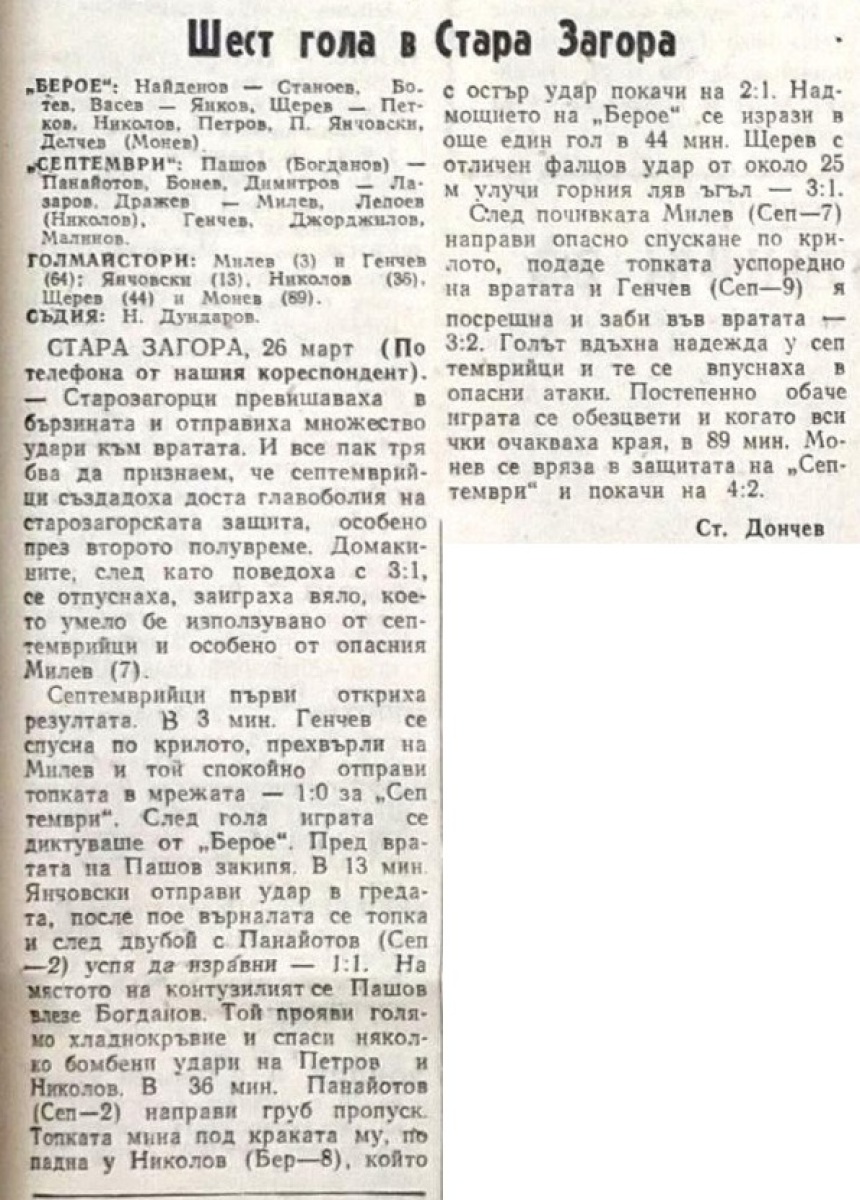 «Берое» Стара-Загора - «Септември» София - 4:2