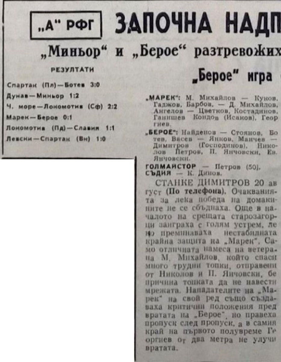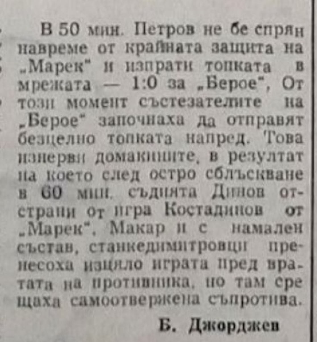 «Марек» Станке-Димитров - «Берое» Стара-Загора - 0:1