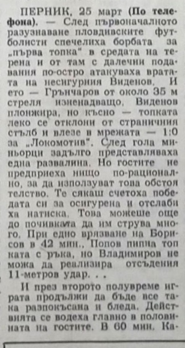 «Минёр» Перник - «Локомотив» Пловдив - 1:1