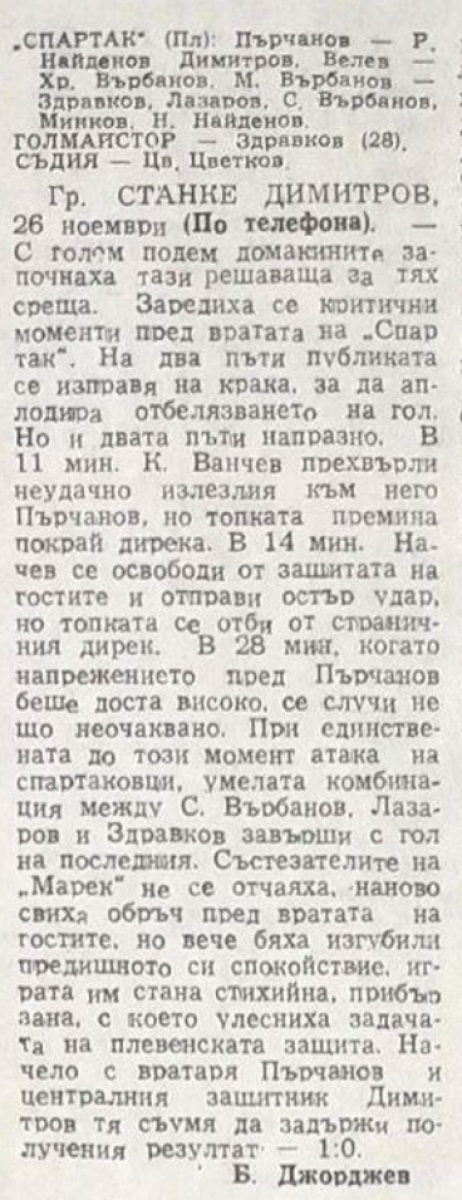«Марек» Станке-Димитров - «Спартак» Плевен - 0:1