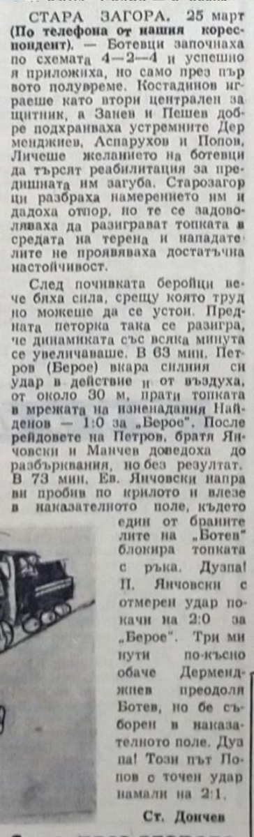 «Берое» Стара-Загора - «Ботев» Пловдив - 2:1