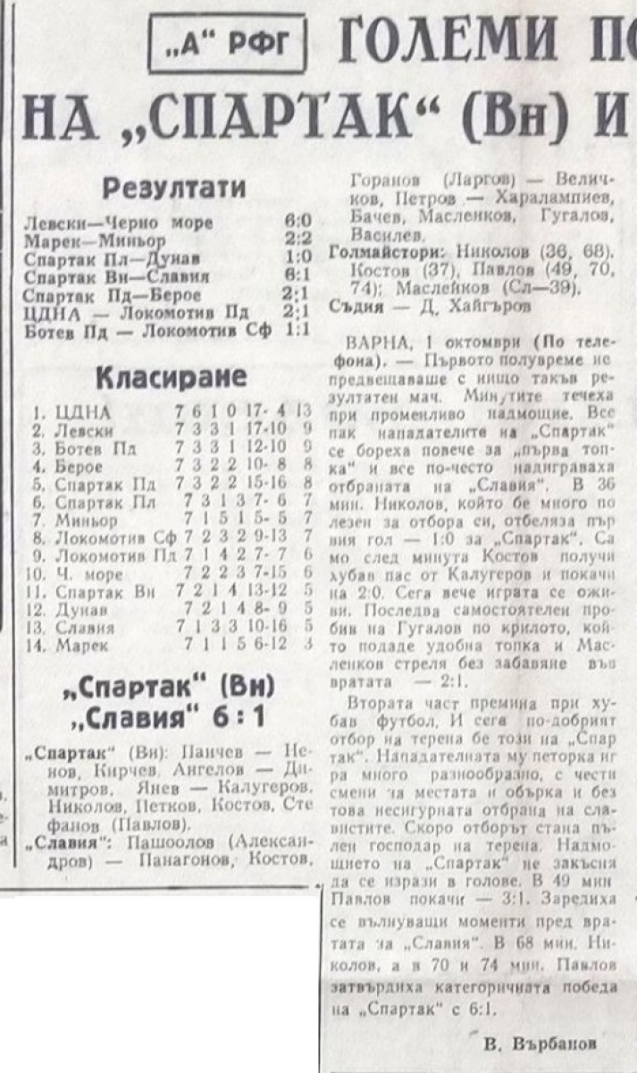 «Спартак» Варна - «Славия» София - 6:1